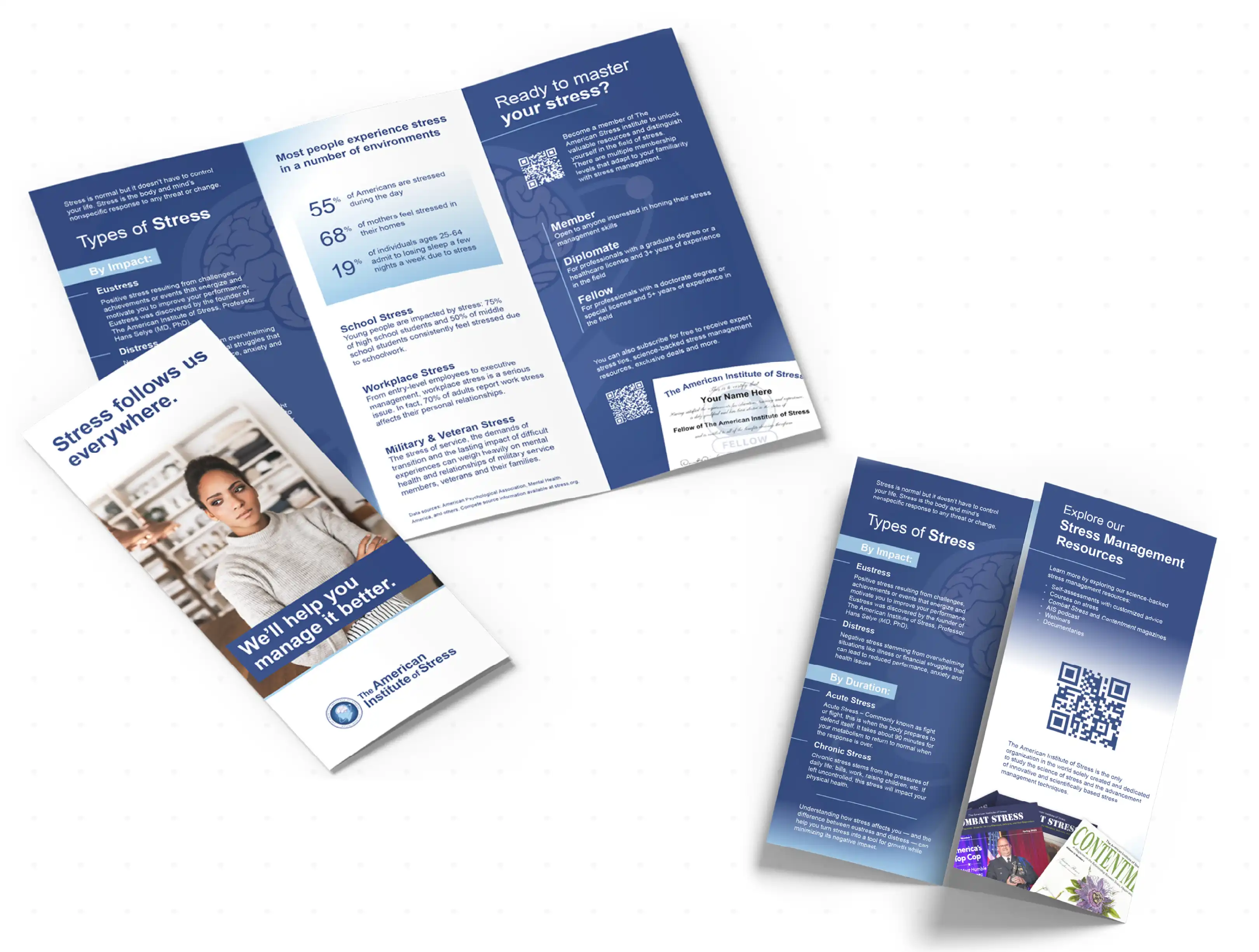 The nonprofit educational institute - the American Institute of stress needed a short run of deliverables for their existing brand. Copy, a print deliverable, and logo animation were provided to bolster existing educational efforts by the institution.