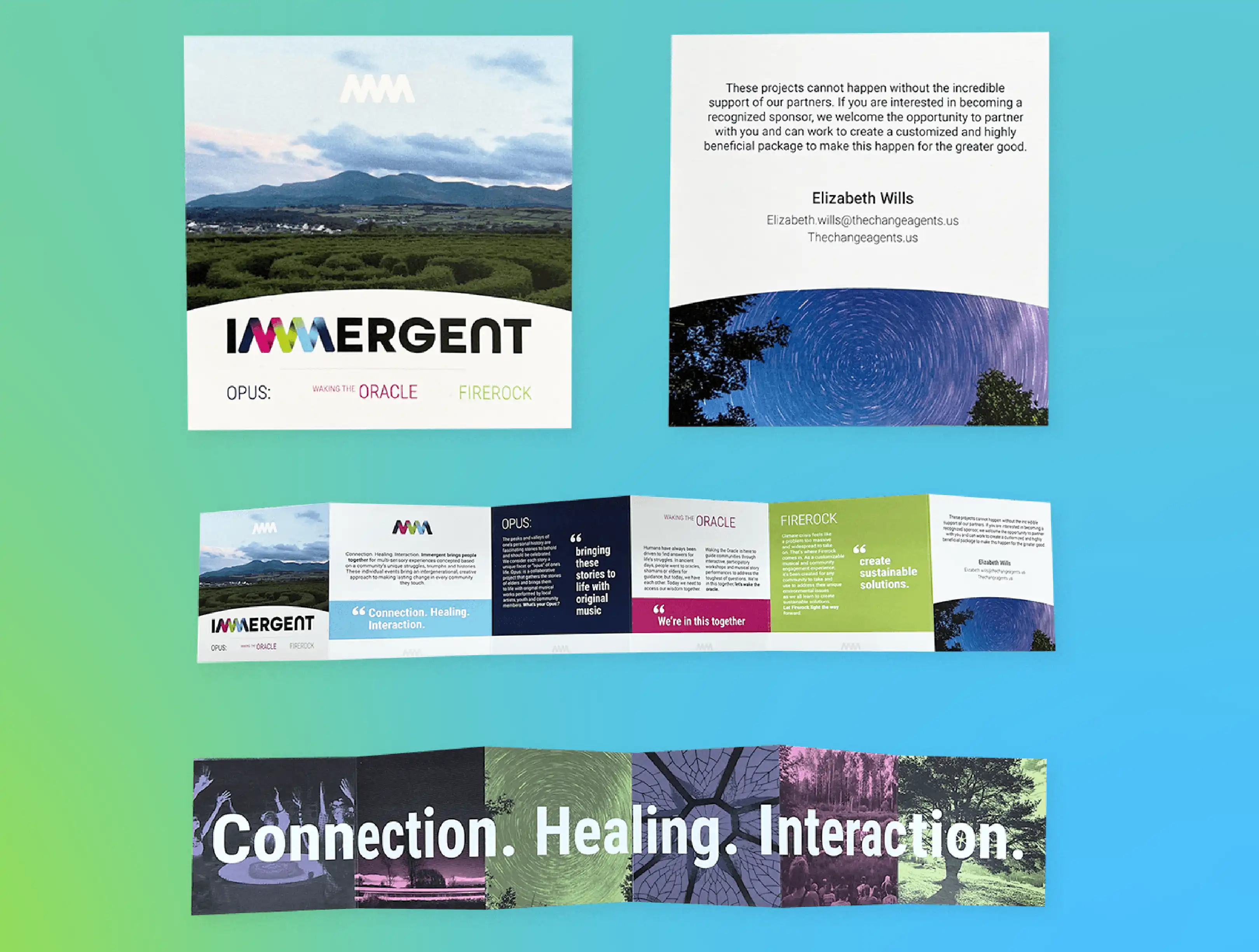 Using gradients, organic imagery and an overall polished feel I delivered a fresh brand that Immergent felt suited all of their needs.